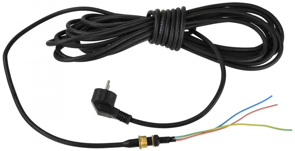 Cablul de alimentare electrică este proiectat pentru pompe submersibile. Se potrivește majorității pompelor monofazate disponibile pe piață. Cablul este complet cu șurub și presetupe. Tip cablu: H05RN-F Lungime: 7,5 m