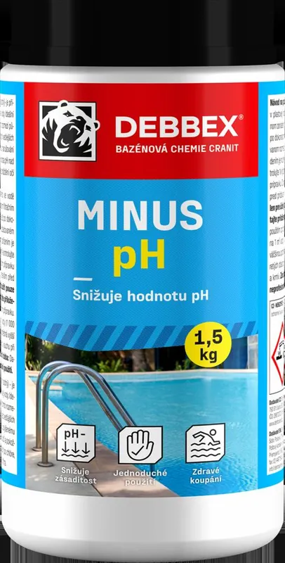 Este conceput pentru a reduce valoarea pH-ului apei din piscină. Valoarea ideală a pH-ului pentru apa de scăldat ar trebui să fie în intervalul 6,8-7,6. În această gamă, dezinfectanții funcționează cu eficiență maximă și fără efecte secundare negative. La valori ale pH-ului sub 6,8, pot exista daune crescute ale materialelor piscinei, decolorarea culorii și iritarea ochilor și a pielii. Valorile pH-ului de peste 7,6 pot provoca turbiditate lăptoasă în apă, miros de clor, precum și iritarea ochilor și a pielii și înfundarea filtrului. Se dozează 15 g de preparat (1 lingură rasă) la 1 m3 de apă (1.000 litri), în timp ce valoarea pH-ului va fi redusă cu aproximativ 0,2 (în cazul apei dure este necesară de obicei o doză mai mare).