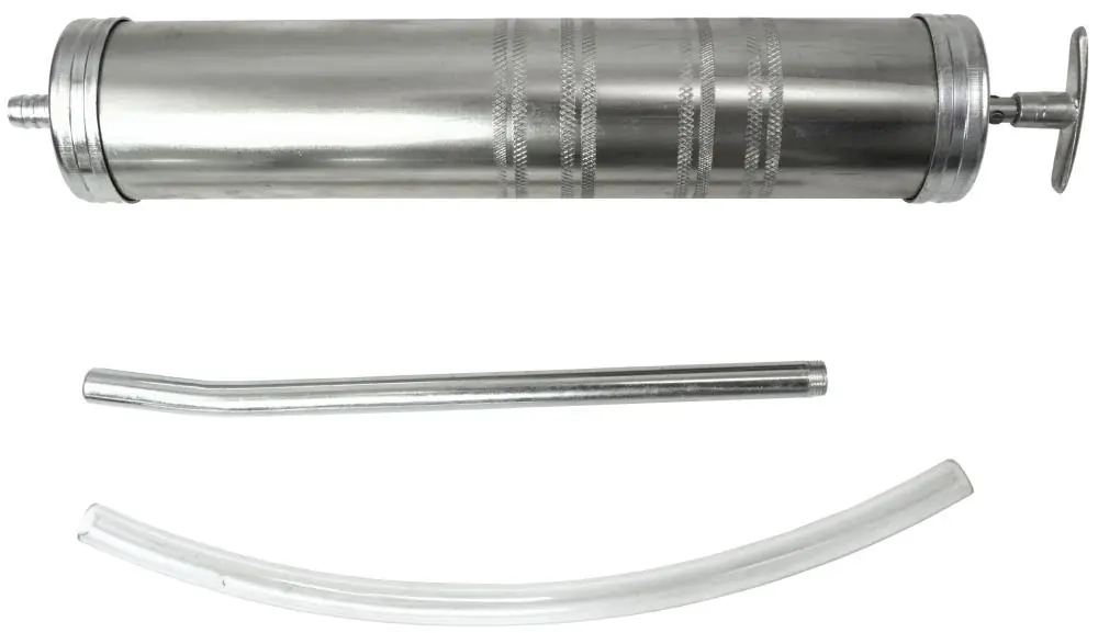 Seringă manuală de ulei cu un volum de 500 ml. Se foloseste pentru injectarea uleiului in locuri greu accesibile precum cutii de viteze, osii motoare Caracteristici produs: volum 500 m, constructie neteda, diametru conector 10 mm, diametru corp 56 mm, furtun flexibil 12 x 290 mm, teava de lubrifiere indoita 12 x 240 mm