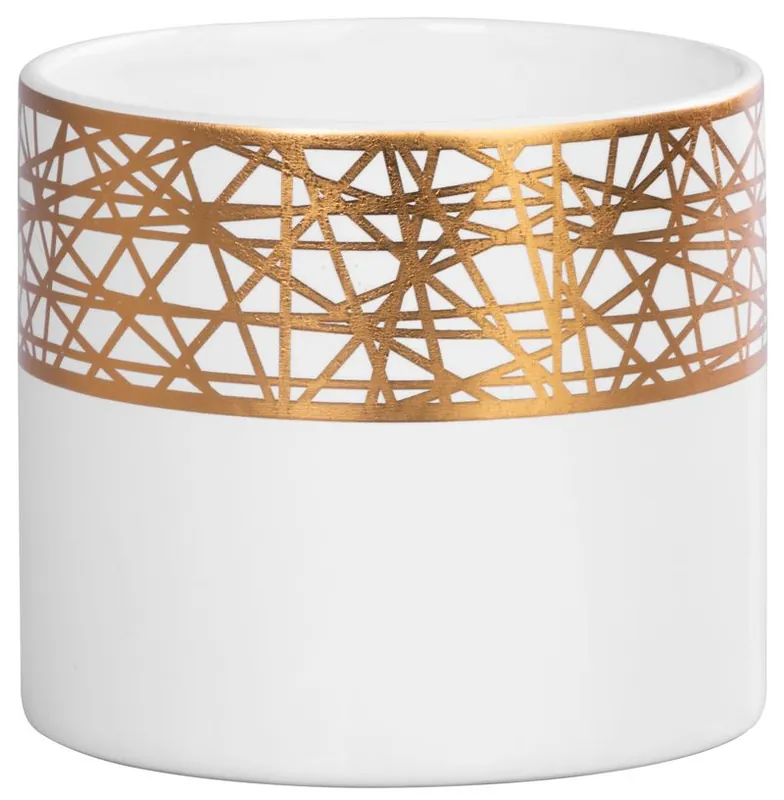 Decor MagicHome, Ghiveci de flori cu ornament auriu, alb, dolomit, 16,8×16,8×14,7 cm Plată securizată