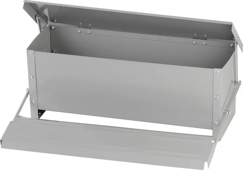 - Mecanism acționat cu piciorul – deschide capacul doar atunci când greutatea este sub așteptări (de exemplu, pui), prevenind risipa de furaje și contaminarea.