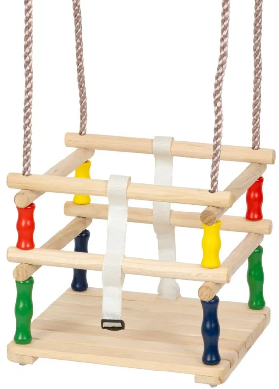 Leagănul din lemn pentru copii oferă divertisment plăcut copiilor. Întreaga construcție este din lemn și oferă o capacitate de încărcare de 30 kg. Datorită legănării copiilor mai mici, leagănul este echipat cu un spătar ridicat pe fiecare parte, oferind astfel protecție împotriva căderii. Dimensiunile sunt 360 x 30 cm. Leagănul trebuie așezat prin agățarea inelelor metalice pe cârlige pre-găurite. Cercurile sunt situate la capetele unor frânghii cu un diametru de 10 mm și o lungime de 2 m. Puteți seta oricând lungimea manual, după cum este necesar.