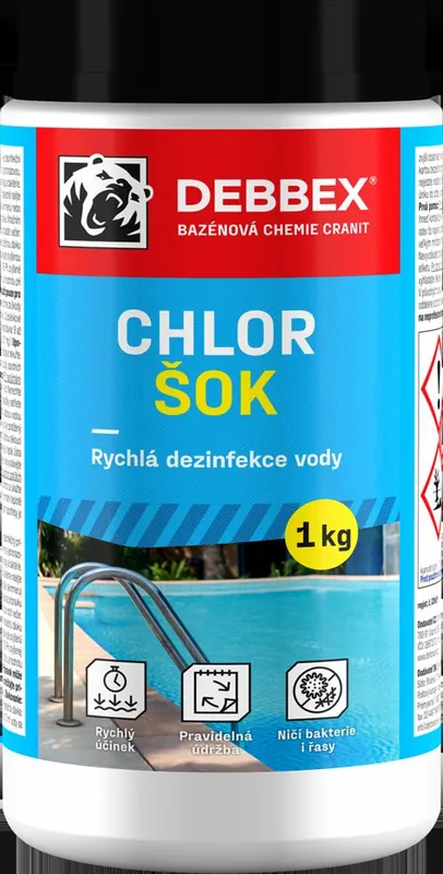 Preparare dezinfectantă pentru întreținerea în toate anotimpurile a tuturor tipurilor de piscine, în primul rând pentru tratarea „șocului” a apei piscinei după umplere sau în caz de poluare puternică. Elimina algele si bacteriile. Folosind 1,8 g de produs la 10 m3 de apă crește conținutul de clor activ cu cca 0,1 mg/l.