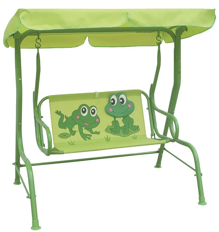 Leagănul pentru copii oferă multă distracție pentru cei mai mici copii. Este destinat pentru maxim 2 copii. Scaunul include si curele de prindere pe care le poti fixa in jurul stomacului copilului. Dimensiune: 115x75x110 cm si capacitatea maxima de incarcare este de 80 kg. Nu supraîncărcați leagănul, acesta poate fi deteriorat și puteți fi rănit. Culoare: verde cu motiv de broasca. Leagănul trebuie așezat pe o suprafață plană.
