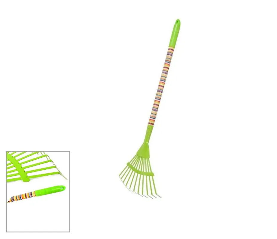 Livrare rapidă Grebla metalică pentru copii, mâner din lemn, dungi colorate, 76cm X