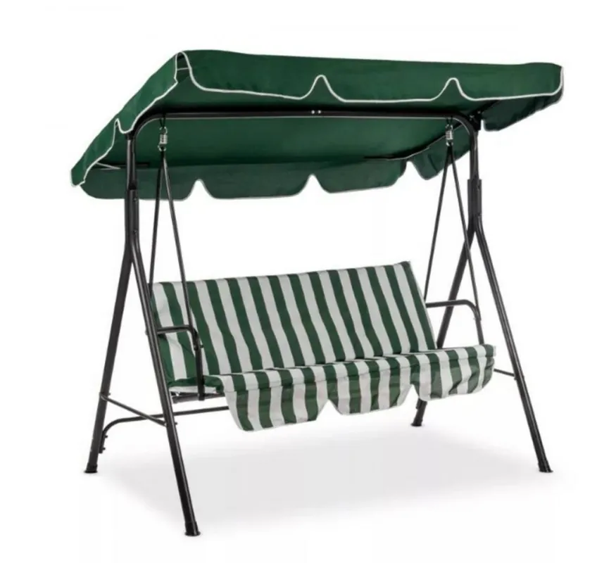Un leagăn de grădină este o soluție potrivită pentru relaxarea de zi cu zi în aer liber. Leagănul verde la modă se potrivește perfect în mediul grădinii și al terasei. Copertina cu unghi de înclinare reglabil protejează eficient împotriva arderii în orice moment. Leaganul conceput pentru 3 persoane este o oportunitate de relaxare cu familia si prietenii. Materialele folosite în construcție vor permite o utilizare mai îndelungată a leagănului. Leagăn practic cu 3 locuri pentru terasă și balcon, înclinare reglabilă, oferă protecție eficientă împotriva soarelui. Leagănul vă permite să vă relaxați cu mai multe persoane în același timp, ceea ce este ideal pentru întâlniri de familie și prieteni. Structura din oțel cu acoperire cu pulbere prelungește durata de viață a leagănului. Culoarea verde se potrivește perfect cu vegetația grădinii. Capacitate de incarcare 260 kg