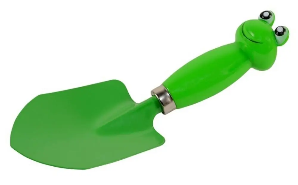 lopata de gradina pentru copii, lungime totala 20 cm, lopata-otel, maner din plastic in forma de broasca, culoare verde, potrivit pentru copii de la 3 ani