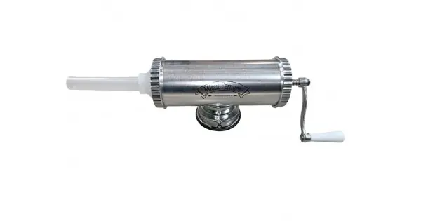 Capacitatea de 1.5 kg este ideală pentru gospodăriile care pregătesc porții moderate, iar cele 5 pâlnii incluse permit realizarea cârnaților de diferite grosimi – subțiri, medii sau groși. Manivela ergonomică face procesul de umplere mai ușor, fără efort suplimentar.
