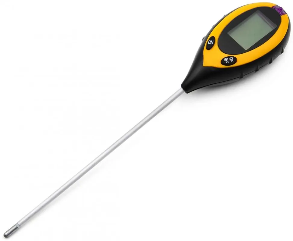 Un aparat care vă permite să măsurați aciditatea și umiditatea solului, precum și temperatura solului și intensitatea radiației solare Utilizare: interior/exterior Alimentare: baterie de 9V (nu este inclusă în pachet) 5 nivele scară de măsurare a umidității: DRY + (foarte uscat) / DRY / NOR / WET / WET + (foarte umed) scară de măsurare a pH-ului: 3,5-89 de grade scala de măsurare a radiației solare: LOW (scăzut) – / HIGH (ridicat) +Temperatura solului scară de măsurare: – 9 / + 50 °C sau 6 – 122 °F greutate: 0,13 kg