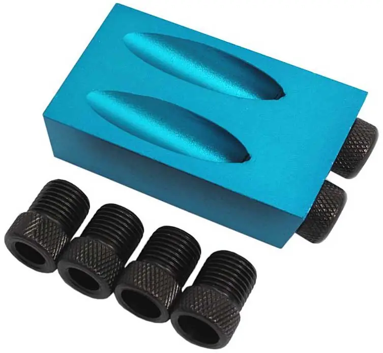 Pregătire pentru găurirea precisă a găurilor de legătură. Creează găuri la un unghi de 15 °. Setul contine carcase pentru gauri de 6 mm, 8 mm, 10 mm.