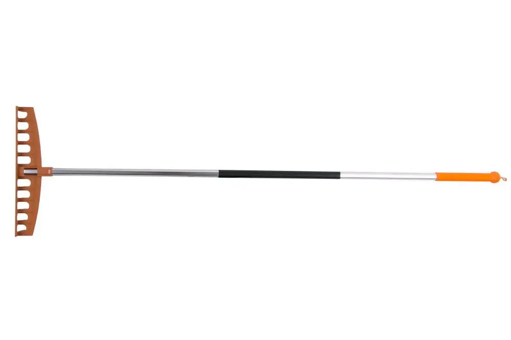 greblă din plastic cu 12 dinți cu mâner AL, lățime greblă 41cm, lungime mâner 160 cm, capăt din plastic, reglare mâner cauciucată pentru o prindere confortabilă, posibilitatea agățării de mâner pe mâner