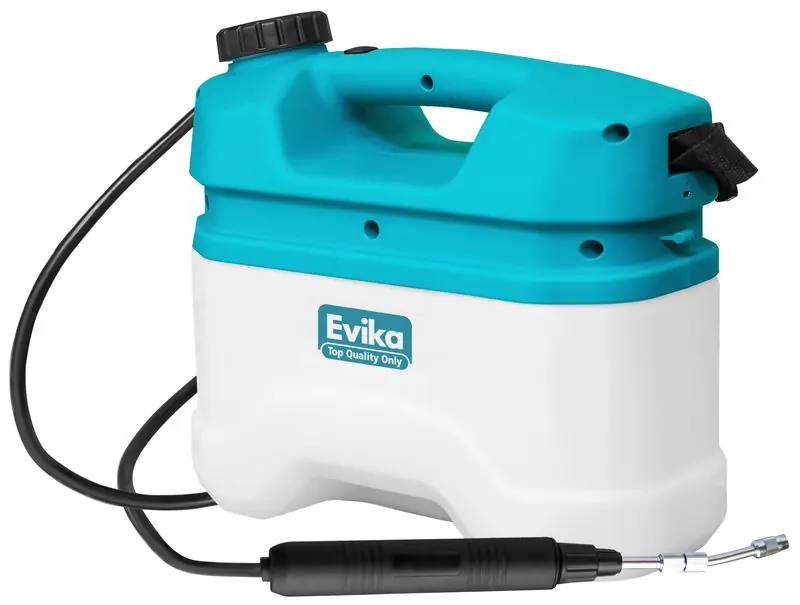 Pulverizatorul cu baterii ușor, compact și puternic EVIKA este proiectat pentru pulverizarea substanțelor chimice agricole și de grădină care sunt folosite pentru a lupta împotriva insectelor și buruienilor dăunătoare. Pulverizatorul fără fir este o alternativă excelentă la pulverizatoarele manuale sau pe benzină. Il poti folosi usor si comod acasa in propria gradina, dar si in gradini mari cu plante ornamentale sau utile. Datorită bateriei încorporate, permite lucrul în locuri fără acces la rețeaua electrică. Pulverizatorul cu baterie permite o reducere semnificativă a efortului în timpul funcționării și obținerea unei eficiențe mai mari decât în cazul pulverizatoarelor manuale. Unul dintre cele mai mari avantaje ale pulverizatorului este greutatea sa redusă, doar 2,2 kg, astfel încât să nu obosești prea mult când îl folosești. Volumul rezervorului de pulverizare este de 5 litri, în timp ce timpul de funcționare este de 150 min. Are o curea confortabila si un maner telescopic, care are o lungime de 26 – 42,5 cm. Se incarca cu cablul USB inclus, adaptorul nu este inclus in pachet.