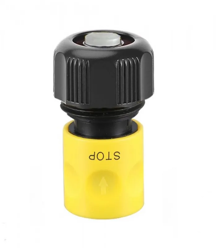 conector rapid pentru furtun de 3/4″, plastic, cu functie STOP – permite deconectarea furtunului fara scurgeri de apa