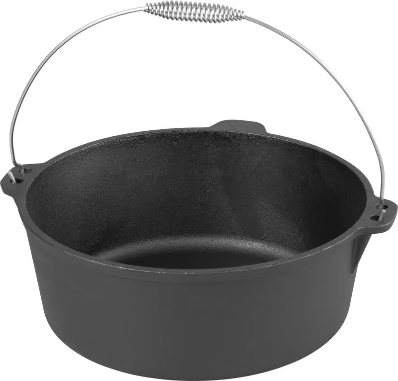 Fierbătorul de înaltă calitate din fontă cu tratament cu ulei MagicHome este ideal pentru prepararea gulașului cu ocazia sărbătorilor, abatoarelor și a altor ocazii. Fierbătorul are un volum de 10,1 litri. si diametru 34 cm. Acest ceainic include și un mâner din oțel inoxidabil. Avantajele vaselor de gătit din fontă sunt antiaderente, conductivitate termică perfectă, reținere a căldurii și rezistență ridicată. Fierbătorul este ecologic deoarece nu conține PFOA, PFOS, VOC, plumb sau cadmiu. Potrivit pentru utilizare pe foc deschis sau cu inducție, electrică, pe gaz, cu halogen și sobă ceramică din sticlă.