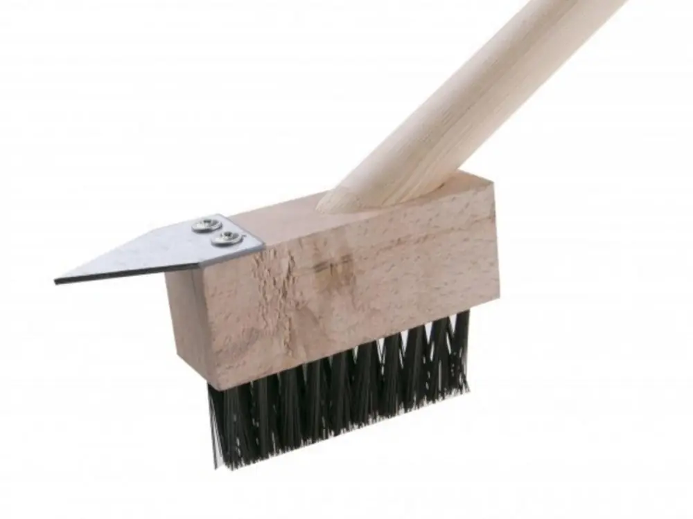 Perie pentru curățarea plăcilor interblocate cu mâner. Peria de pavaj bloc este foarte eficientă în îndepărtarea mușchilor și buruienilor pe suprafețe mai mici. Peria din lemn de molid este prevăzută cu sârmă de oțel de înaltă calitate. Lungimea manerului 140 cm.