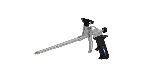 Pistol de aplicatspumă Model 1201-21 . Acest pistol utilizează o duză din alamă, ceea ce face ca aplicarea spumei să fie extrem de precisă. Modelul de pulverizare poate fi reglat cu ajutorul unui buton zimțat aflat în parteadin spate a pistolului. Mânerul conturat din plastic oferă utilizatorului o prindere sigură în timpul lucrului. Capul din aluminiu și bila din oțel inoxidabil asigură o conexiune strânsă și sigură între pistol și recipientul de spumă.Caracteristici: