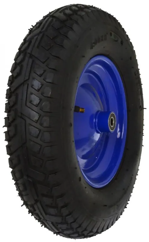 Roata gonflabila albastra cu rulmenti 4.00 – 8. Janta rezistenta cu pulbere metalica ofera stabilitate sporita. Întregul este realizat din materiale de înaltă calitate.Caracteristici produs: Diametru exterior anvelopă: 390 mm Lățimea anvelopei: 97 mm Diametru interior anvelopă: 220 mm Orificiu ax: 12 mm Lățime butuc: 97 mm Rulment: bilă dublă Material: cauciuc, disc de oțel Presiune maximă: 2,1 bar / 30 psi Utilizare: camioane