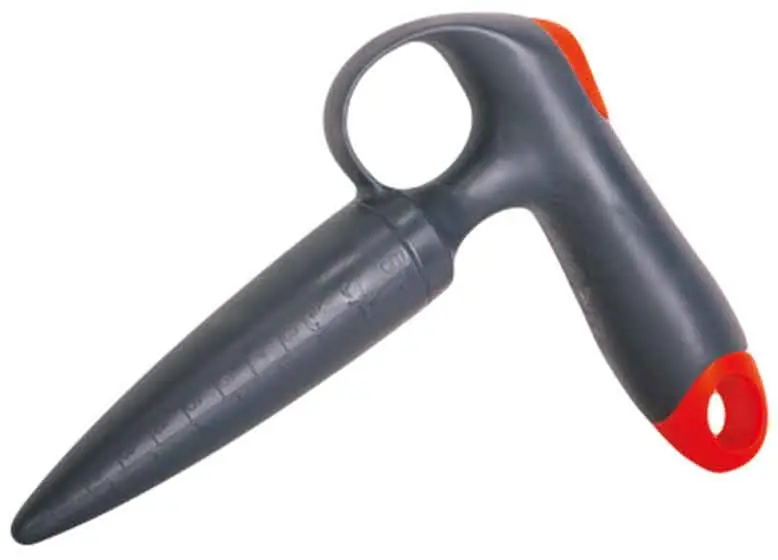 Tăruş de plantare din plastic cu ochi, negru-portocaliu, RAMPJe, realizat din material de înaltă calitate, permite lucrul uşor şi plăcut în pământ. Forma ergonomică și mânerul stabil asigură confortul și confortul muncii. Scara liniară de relief face posibilă standardizarea adâncimii de săpătură în pământ.