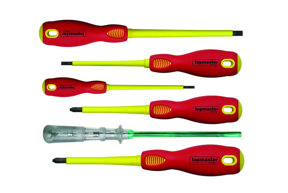 Sculele de m?n? profesionaleTopmastercombin? designul excep?ional, calitatea ?i durata mare de intrebuintare. Setul de surubelnite izolatese caracterizeaza prin:drept|4 pcs.Phillips (Ph)|pcs.